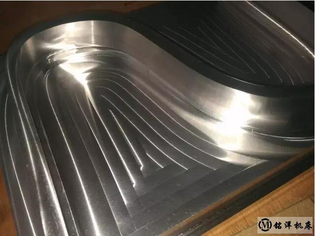 如圖,五軸機床可以采用刀具側刃切削,加工效率更高。