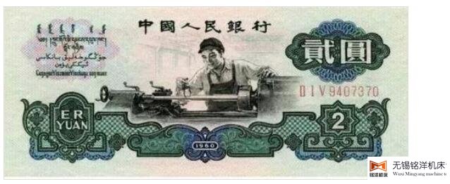 1962年發(fā)行的第三套人民幣中2元券正面中工人所使用的車床,就來自于*ST沈機,是新中國第一臺自行研制的普通車床。